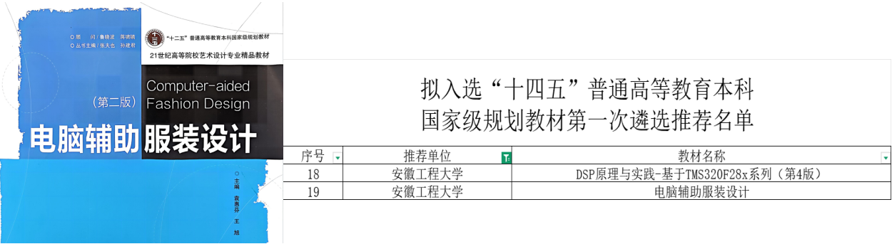 课程、教材建设成果显著。《水刺加固工艺虚拟仿真实验》入选第三批国家级一流课程。获批省级线上、线下、混合式、智慧课堂等各类课程10余门。主编/参编《纺纱质量控制》、《电脑辅助服装设计》等20余部教材,其中《电脑辅助服装设计》入选国家级规划教材,多部教材入选省部级规划教材,课程建设成效突出。