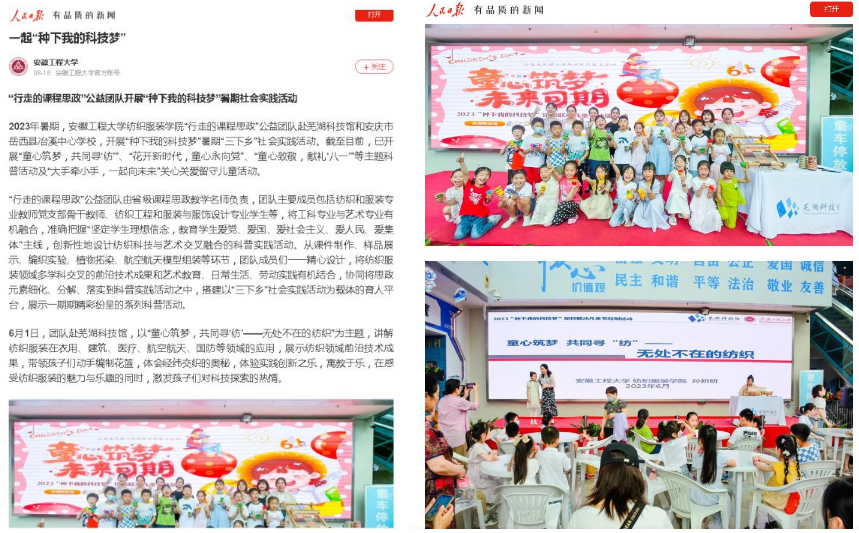 学院聚焦纺织、服装及相关领域核心技术和关键问题,创新人才培养模式和科技协同创新机制;依托行业龙头企业资源,融合“科”“教”优势,在培养方案、课程体系、实践教学和基地建设等方面深度合作,联合芜湖悠派等企业,开展“冠名班”订单式培养。学院投入专项经费,依托导师制,推进本科生进团队、实验室、进项目,自主设立2批共112个科研项目,覆盖66名指导老师和390人次学生,有效推进了纺织服装类本科拔尖人才的培养。